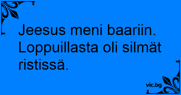 Jeesus meni baariin. Loppuillasta oli silmät ristissä.