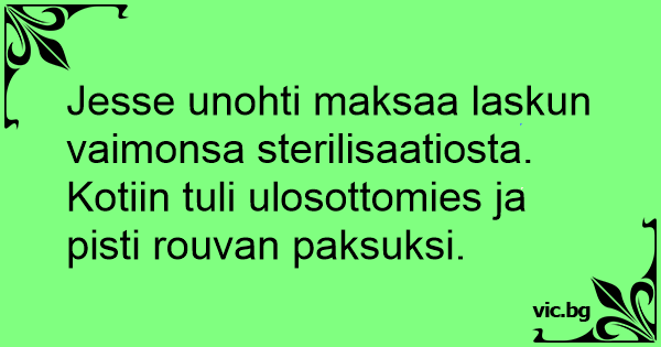 Jesse unohti maksaa laskun vaimonsa sterilisaatiosta.