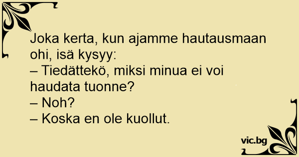 – Tiedättekö, miksi minua ei voi haudata tuonne?