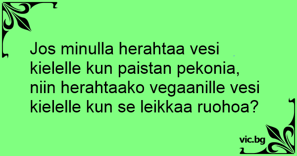 Jos minulla herahtaa vesi kielelle kun paistan pekonia, niin herahtaako vegaanille vesi kielelle kun se leikkaa ruohoa?