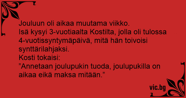 ”Annetaan joulupukin tuoda, joulupukilla on aikaa eikä maksa mitään.”