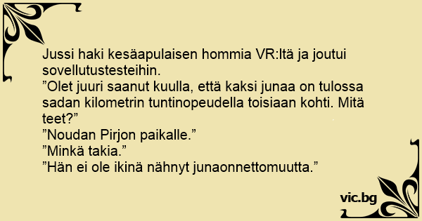 Jussi haki kesäapulaisen hommia VR:ltä ja joutui sovellutustesteihin.