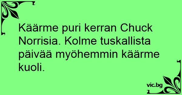 Käärme puri kerran Chuck Norrisia. Kolme tuskallista päivää myöhemmin käärme kuoli.