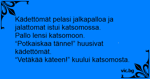 Kädettömät pelasi jalkapalloa ja jalattomat istui katsomossa.