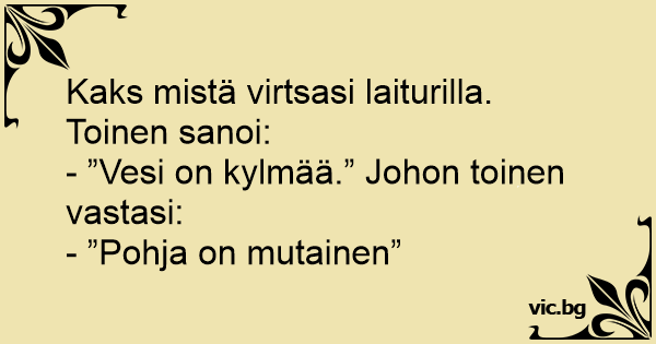 - ”Vesi on kylmää.” Johon toinen vastasi: