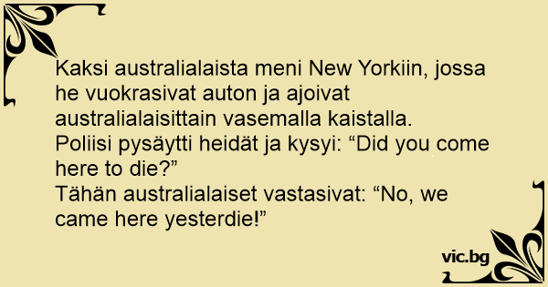 Tähän australialaiset vastasivat: “No, we came here yesterdie!”