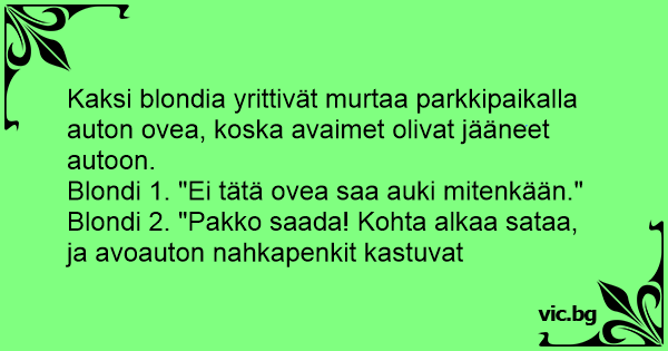 Blondi 1. "Ei tätä ovea saa auki mitenkään."