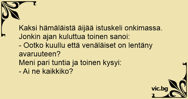 - Ootko kuullu että venäläiset on lentäny avaruuteen?