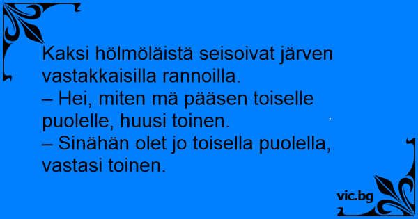 – Sinähän olet jo toisella puolella, vastasi toinen.
