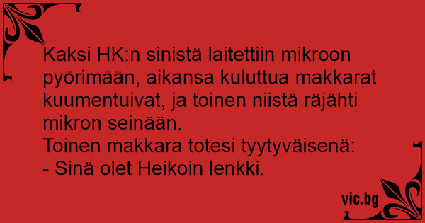 Kaksi HK:n sinistä laitettiin mikroon pyörimään, aikansa kuluttua makkarat kuumentuivat, ja toinen niistä räjähti mikron seinään.