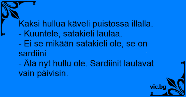 - Älä nyt hullu ole. Sardiinit laulavat vain päivisin.