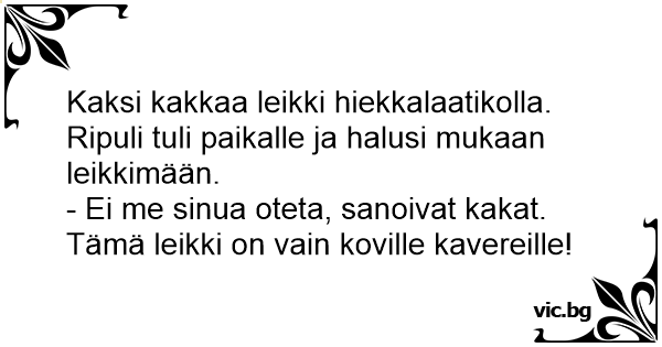 - Ei me sinua oteta, sanoivat kakat. Tämä leikki on vain koville kavereille!