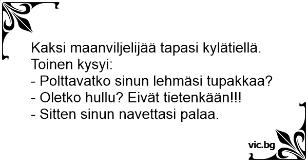 Kaksi maanviljelijää tapasi kylätiellä. Toinen kysyi: