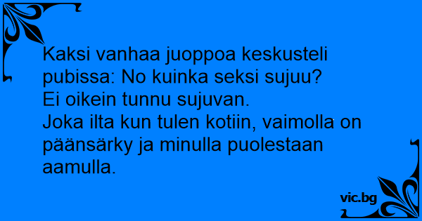 Kaksi vanhaa juoppoa keskusteli pubissa: No kuinka seksi sujuu?