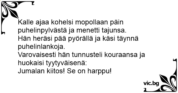 Kalle ajaa kohelsi mopollaan päin puhelinpylvästä ja menetti tajunsa.