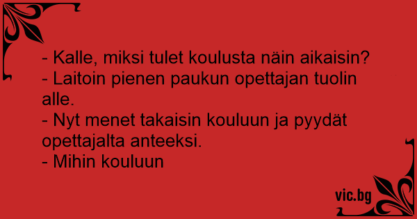 - Kalle, miksi tulet koulusta näin aikaisin?