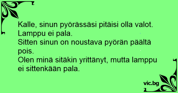 Kalle, sinun pyörässäsi pitäisi olla valot.