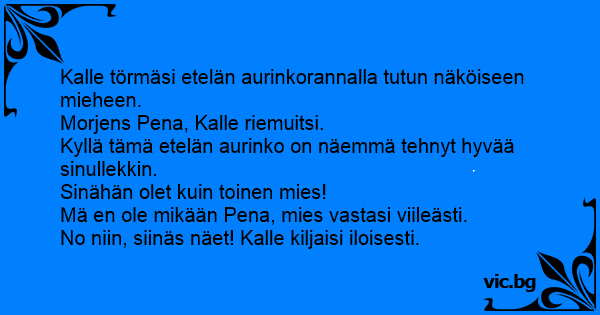 Mä en ole mikään Pena, mies vastasi viileästi.