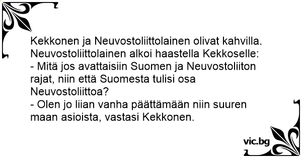 Kekkonen ja Neuvostoliittolainen olivat kahvilla. Neuvostoliittolainen alkoi haastella Kekkoselle: