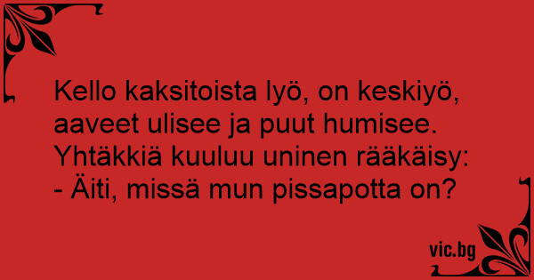 Kello kaksitoista lyö, on keskiyö, aaveet ulisee ja puut humisee. Yhtäkkiä kuuluu uninen rääkäisy:
