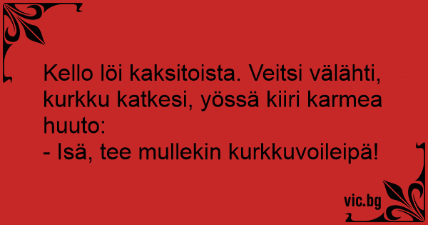 Kello löi kaksitoista. Veitsi välähti, kurkku katkesi, yössä kiiri karmea huuto: