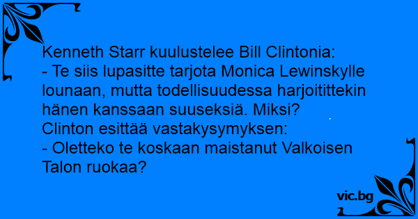 - Te siis lupasitte tarjota Monica Lewinskylle lounaan, mutta todellisuudessa harjoitittekin hänen kanssaan suuseksiä. Miksi?