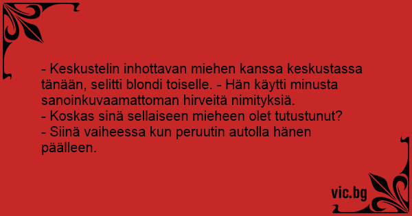- Keskustelin inhottavan miehen kanssa keskustassa tänään, selitti blondi toiselle. - Hän käytti minusta sanoinkuvaamattoman hirveitä nimityksiä.