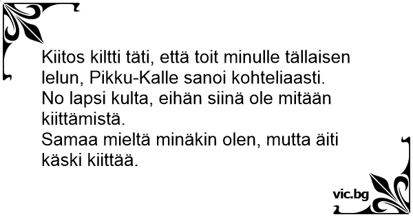 Samaa mieltä minäkin olen, mutta äiti käski kiittää.