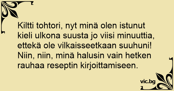 Niin, niin, minä halusin vain hetken rauhaa reseptin kirjoittamiseen.