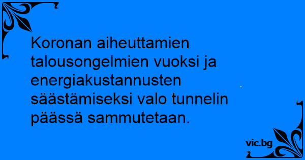 Koronan aiheuttamien talousongelmien vuoksi ja energiakustannusten säästämiseksi valo tunnelin päässä sammutetaan.