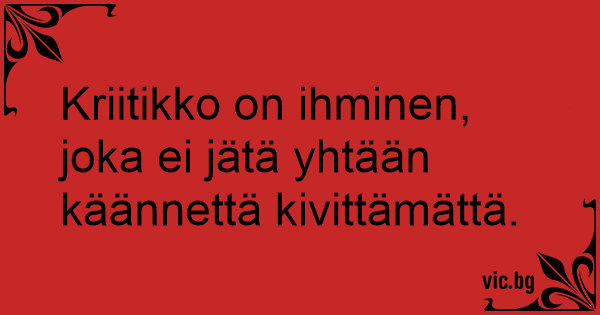 Kriitikko on ihminen, joka ei jätä yhtään käännettä kivittämättä.