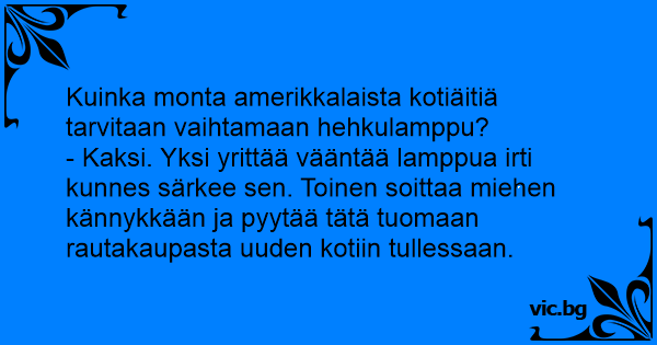 Kuinka моnта amerikkalaista kotiäitiä tarvitaan vaihtamaan hehkulamppu?