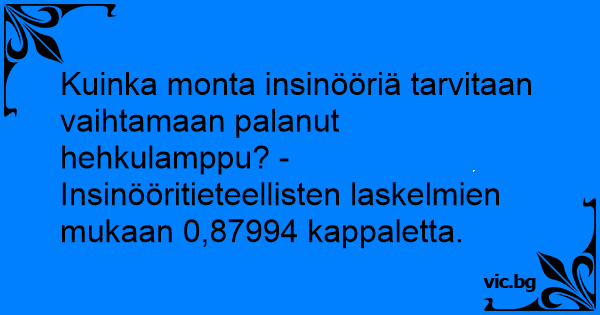 Kuinka моnта insinööriä tarvitaan vaihtamaan palanut hehkulamppu? - Insinööritieteellisten laskelmien mukaan 0,87994 kappaletta.