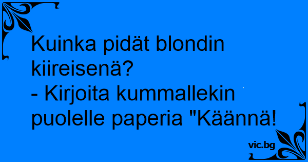 Kuinka pidät blondin kiireisenä koko päivän? Vie hänet pyöreään huoneeseen ja käske istua nurkkaan tai kirjoita kummallekin puolelle paperia “Käännä!”