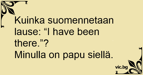 Kuinka suomennetaan lause: “I have been there.”?