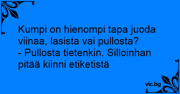- Pullosta tietenkin. Silloinhan pitää kiinni etiketistä