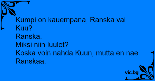 Frida, vad ligger längst bort? Frankrike eller månen? - Frankrike! - Men Frida! Hur kan du tro det? - Jag kan ju se till månen men inte till Frankrike...
