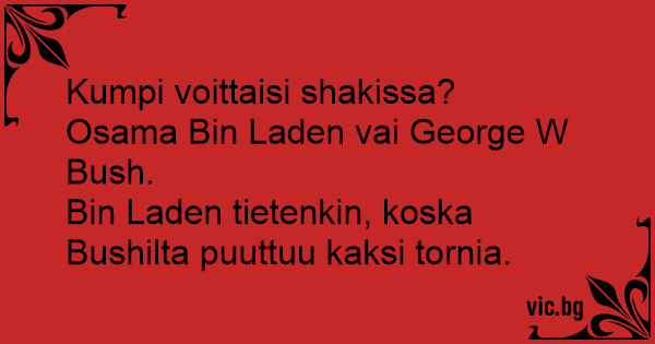 Vem vinner i schack – Bush eller Osama Bin Ladin? Det gör Bin Ladin eftersom Bush saknar två torn.