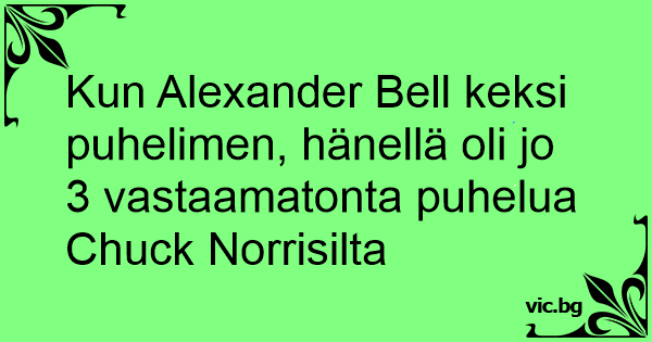 Kun Alexander Веll keksi puhelimen, hänellä oli jo 3 vastaamatonta puhelua Chuck Norrisilta