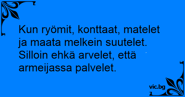 Kun ryömit, konttaat, matelet ja maata melkein suutelet. Silloin ehkä arvelet, että armeijassa palvelet.