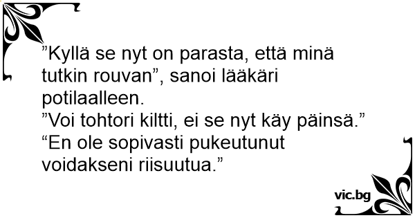 ”Kyllä se nyt on parasta, että minä tutkin rouvan”, sanoi lääkäri potilaalleen.