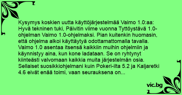 Kysymys koskien uutta käyttöjärjestelmää Vaimo 1.0:aa: