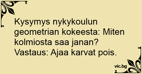 Kysymys nykykoulun geometrian kokeesta: Miten kolmiosta saa janan?