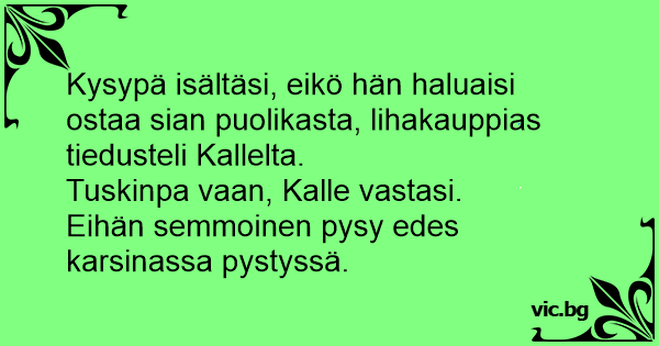 Kysypä isältäsi, eikö hän haluaisi ostaa sian puolikasta, lihakauppias tiedusteli Kallelta.