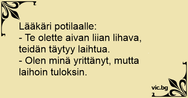 - Te olette aivan liian lihava, teidän täytyy laihtua.