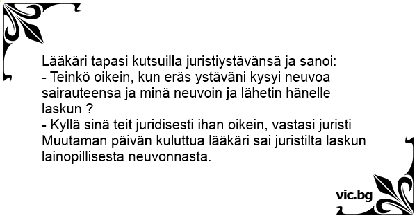 Lääkäri tapasi kutsuilla juristiystävänsä ja sanoi: