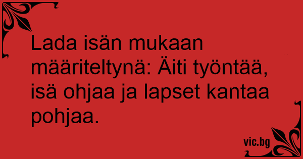 Lada isän mukaan määriteltynä: Äiti työntää, isä ohjaa ja lapset kantaa pohjaa.