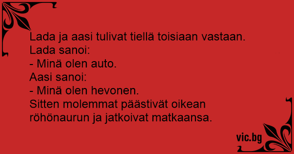Lada ja aasi tulivat tiellä toisiaan vastaan. Lada sanoi: