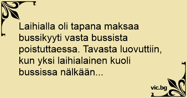 Laihialla oli tapana maksaa bussikyyti vasta bussista poistuttaessa. Tavasta luovuttiin, kun yksi laihialainen kuoli bussissa nälkään...