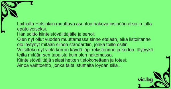 Laihialta Helsinkiin muuttava asuntoa hakeva insinööri alkoi jo tulla epätoivoiseksi.